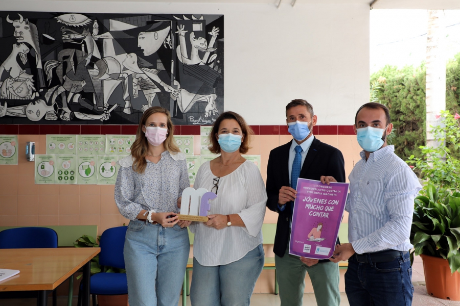 El Ayuntamiento patrocina con 2.300 € el I Concurso de Microrelatos contra la «Violencia Machista» con el título ‘Jóvenes con mucho que contar’, organizado por la Asociación Marbella Feminista. La iniciativa ha sido presentada hoy en el IES Bahía de Marbella por la presidenta del colectivo, Carmen Varo; la coordinadora de Igualdad del centro educativo, Beatriz González; el concejal de Participación Ciudadana, Enrique Rodríguez, y el director general de Violencia de Género, Igualdad de Trato y Diversidad de la Junta de Andalucía, Ángel Mora.