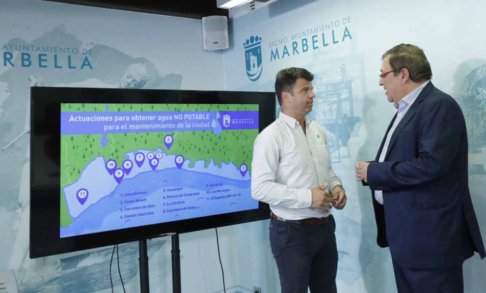 El Ayuntamiento de Marbella pondrá en funcionamiento 11 pozos de agua no potable en las próximas semanas para el baldeo de calles y el riego de zonas verdes, con una inversión de 800.000 euros. Esta medida se suma a las ya adoptadas para afrontar la sequía y dichas infraestructuras, construidas en los años 90, se encuentran localizadas a lo largo de todo el término municipal, como es el caso de Coto de los Dolores, Funny Beach, carretera de Ojén, Camilo José Cela, Guadalpín, Palacio de Congresos Adolfo Suárez, La Carolina, Carretera de Istán, Río Verde, Los Naranjos y El Ingenio. Así lo ha anunciado el concejal de Obras, Diego López, acompañado del gerente de la empresa concesionaria Hidralia, Fulgencio Díaz, de quien ha agradecido “el esfuerzo para que el ahorro de agua sea significativo”.