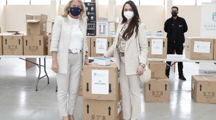 El Ayuntamiento ha iniciado hoy el reparto de cerca de 130.000 mascarillas y 30.000 guantes para familias más vulnerables y centros educativos del municipio para continuar colaborando en las medidas de protección y prevención frente al Covid-19. La alcaldesa, Ángeles Muñoz, ha asistido a la entrega del material, procedente de la donación de los Emiratos Árabes, que ha tenido lugar esta mañana en el Palacio de Ferias y Congresos Adolfo Suárez y ha subrayado “la importancia de seguir apoyando a los más necesitados”.