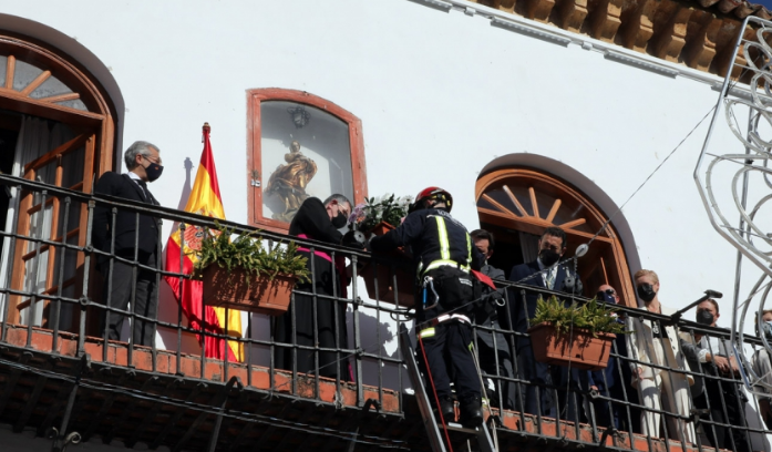 El edil ha subrayado que «tenemos una especial vinculación con esta imagen de la Inmaculada porque desde hace más de un siglo forma parte del edificio del Ayuntamiento en la plaza de los Naranjos» y ha destacado la participación de los bomberos en un acto que se ha desarrollado con todas las medidas de seguridad y en el que se han utilizado los vehículos ligeros adquiridos recientemente.