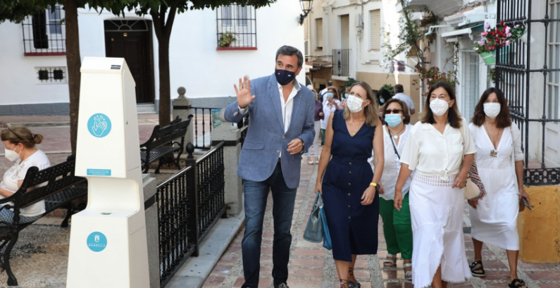 El primer teniente de alcalde, Félix Romero, ha recibido hoy en el Ayuntamiento a la directora general de Comercio de la Junta de Andalucía, Lorena Garrido, con quien ha mantenido un encuentro en el que se han abordado nuevas vías de subvención para seguir contribuyendo a la reactivación del tejido productivo de Marbella, al tiempo que le ha hecho entrega del Plan Dinamizar del sector, impulsado por el Consistorio. Posteriormente, ambos, acompañados de la delegada provincial del ramo, Carmen Sánchez, y de representantes de asociaciones de empresarios y profesionales han visitado el Casco Antiguo de Marbella.