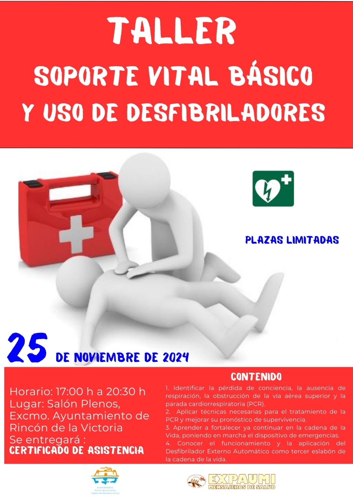 La Concejalía de Sanidad y Consumo del Ayuntamiento de Rincón de la Victoria impartirá un taller de soporte vital básico y uso de desfibriladores dirigido a la población en general.