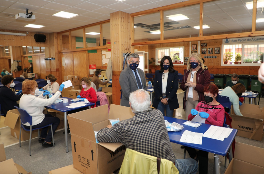 El Ayuntamiento finalizará esta semana el envío de 350.000 mascarillas a los mayores de 60 años empadronados en el municipio y, posteriormente, comenzará el reparto a las personas con menos recursos en colaboración con los centros educativos y entidades sociales como Cáritas. Así lo ha anunciado hoy la alcaldesa, Ángeles Muñoz, quien ha visitado el Centro de Mayores de San Pedro Alcántara en el que usuarios y voluntarios ultiman la preparación de los kits de diez mascarillas que se están entregando en esta primera fase. «Queremos trasladar todo nuestro agradecimiento a las personas que, de forma desinteresada, están participando en una iniciativa que tiene como objetivo hacer llegar a la población el material de prevención contra el Covid-19 donado por Emiratos Árabes», ha señalado la regidora, quien ha avanzado que «tenemos previsto repartir alrededor de un millón de mascarillas para facilitar la protección sanitaria a todos los colectivos vulnerables del municipio».