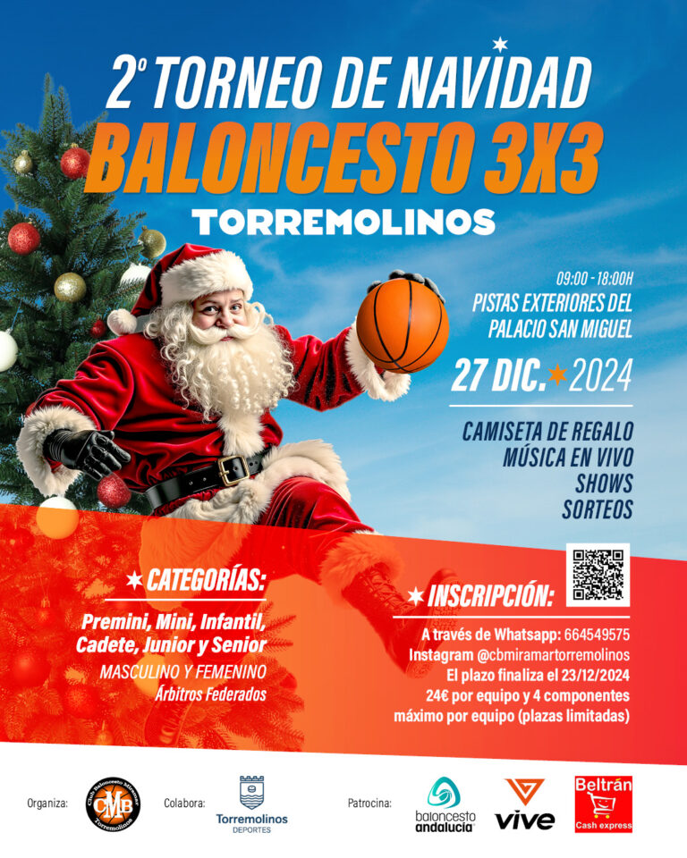 Torremolinos acogerá el próximo 27 de diciembre el segundo torneo de Navidad de Baloncesto 3×3, una competición que impulsa el Club Baloncesto Miramar Torremolinos, con la colaboración de la delegación de Deportes del Ayuntamiento de la localidad y la delegación en Málaga de la Federación Andaluza de Baloncesto.