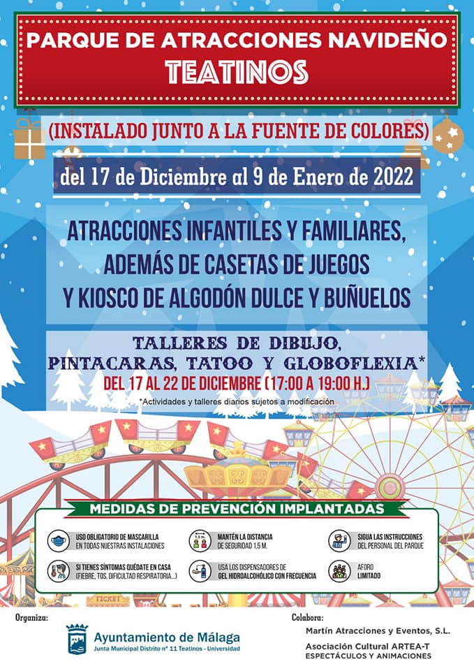 La Junta Municipal de Distrito Teatinos-Universidad en colaboración con su tejido asociativo pone a disposición de sus vecinos un amplio programa de actividades culturales, recreativas y de ocio. Hoy ha sido presentada por la concejala responsable del distrito, Noelia Losada, que ha destacado los dos parques de atracciones, los conciertos al aire libre y la visita de Papa Noel, el Cartero Real y los Reyes Magos.