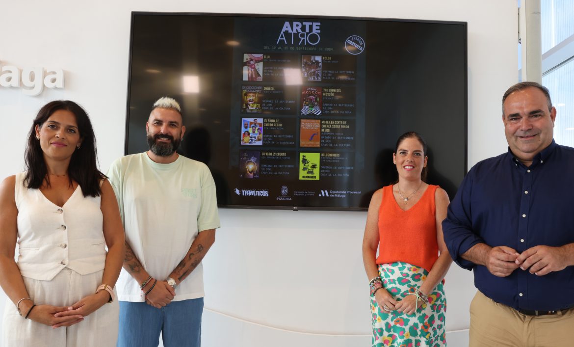 Pizarra celebrará del 12 al 15 de septiembre una nueva edición del festival Arteatro, que contará con ocho actuaciones gratuitas, que incluyen títeres, improvisación, monólogo o sátira. La Diputación colabora y apoya este festival, organizado por el Ayuntamiento de Pizarra y el grupo de teatro local Trenéticos.