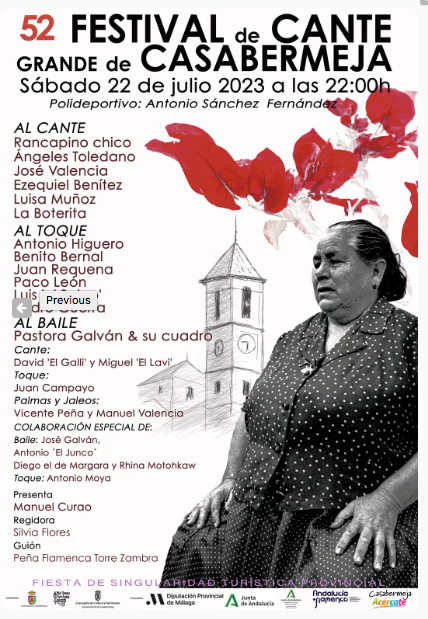 El próximo 22 de julio, sábado más cercano en el calendario a la festividad de Santiago y Santa Ana, Casabermeja celebra la 52ª edición del Festival de Cante Grande, una fiesta declarada de Singularidad Turística Provincial y de Interés Turístico Nacional de Andalucía.
