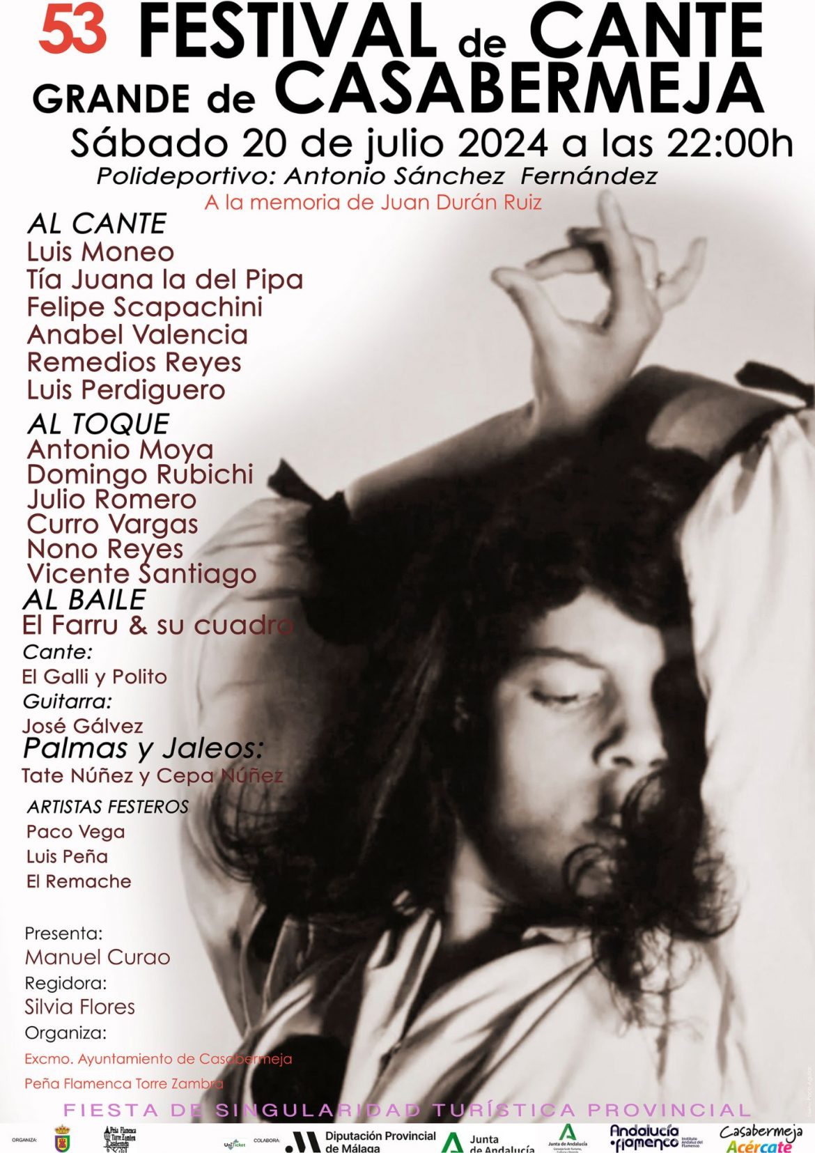 El 20 de julio, el sábado más cercano en el calendario a la festividad de Santiago y Santa Ana, Casabermeja celebra la 53ª edición del Festival de Cante Grande, una fiesta declarada de Singularidad Turística Provincial y de Interés Turístico Nacional de Andalucía.