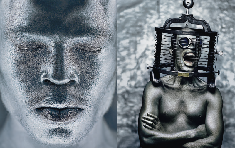 ‘METAL’ es una colección de 36 imágenes que Manarchy inició hace más de 10 años cuando decidió dar vida a la colección de artilugios médicos, rarezas y artefactos industriales; de su amigo Steve Erenberg, más conocido como “Radio Guy”. Estos objetos, contemplados sobre la óptica del artista y no por su funcionalidad, se colocan sobre modelos pintados con spray plateado para lograr unas fotografías con una visión muy íntima y particular.