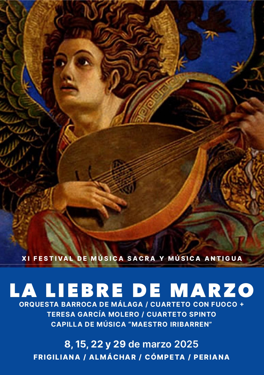 El festival ‘La Liebre de Marzo’ de la Diputación de Málaga vuelve a llevar la música sacra y antigua a lugares emblemáticos de la Axarquía. La décimo primera edición del festival se celebrará los sábados 8, 15, 22 y 29 de marzo con la Orquesta Barroca de Málaga, el Cuarteto Con Fuoco, el Cuarteto Spinto y la Capilla de Música Maestro Iribarren.