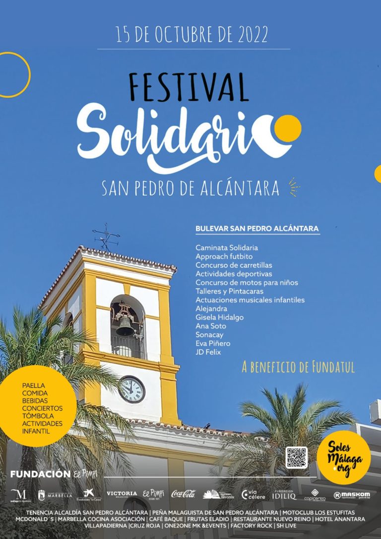 El Festival Soles de Málaga convertirá el próximo 15 de octubre, de 9 a 22 horas, el bulevar de San Pedro Alcántara en una fiesta solidaria para dar voz y visibilidad a las personas con discapacidad y a beneficio de la Fundación Tutelar (Fundatul). El teniente de alcalde sampedreño, Javier García, que ha presentado hoy el evento junto a la concejala de Derechos Sociales, Isabel Cintado, organizado por Fundatul y la Fundación El Pimpi en colaboración con el Ayuntamiento, ha puesto el acento en que “no hay mejor antesala para la feria de San Pedro”, al tiempo que ha animado a los ciudadanos a participar en la cita “para apoyar el importante trabajo que realiza la ONG durante todo el año”.
