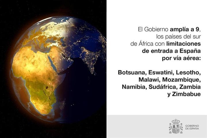 El Gobierno ha aprobado este semana un acuerdo por el que se mantienen las medidas excepcionales para frenar la propagación y el contagio por la variante B.1.1.529 (ómicron) de la COVID-19 aprobadas el pasado 30 de noviembre, por la que se limitan los vuelos entre Sudáfrica, Botsuana, Eswatini, Lesotho, Mozambique, Namibia y Zimbabue y los aeropuertos españoles