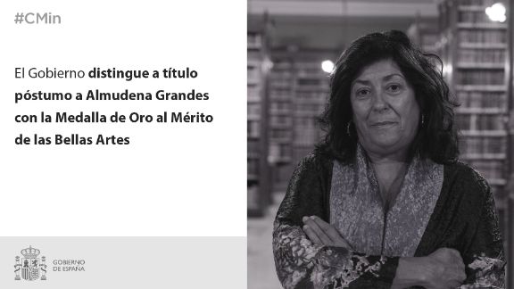 El Consejo de Ministros, a propuesta del Ministro de Cultura y Deporte, Miquel Iceta, ha aprobado mediante Real Decreto la concesión a título póstumo de la Medalla al Mérito en las Bellas Artes, en su categoría de oro, a Almudena Grandes Hernández.