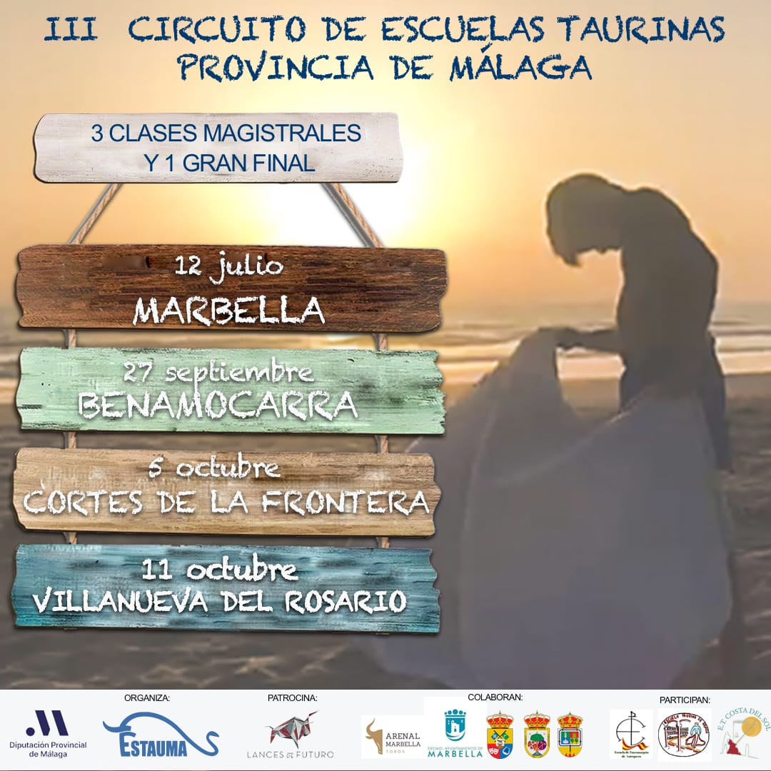 El III Circuito Escuelas Taurinas se celebrará en Marbella (12 de julio), Benamocarra (27 de septiembre), Cortes de la Frontera (5 de octubre) y Villanueva del Rosario, donde tendrá lugar la gran final el 11 de octubre. Todos estos festejos serán gratuitos y se realizan con la colaboración de cada uno de los ayuntamientos y de las empresas que gestionan las plazas de los municipios mencionados.