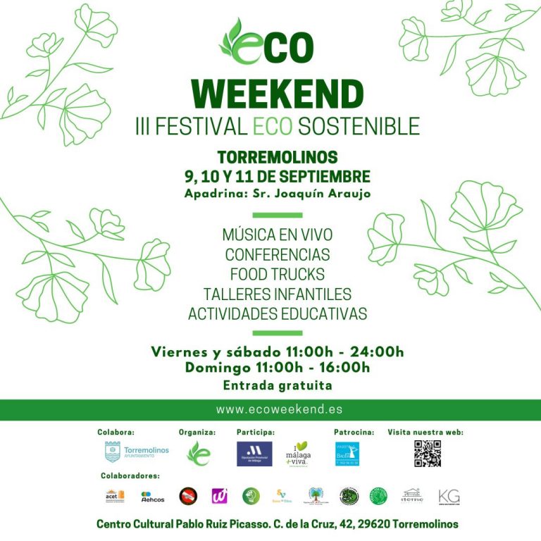 “El centro cultural Pablo Ruiz Picasso será el recinto que acoja los días 9, 10 y 11 de septiembre la tercera edición del Festival Eco Sostenible Ecoweekend, una iniciativa que dará la oportunidad de promover la enseñanza del cuidado del planeta, el ahorro energético o la sostenibilidad, unos temas muy importantes en la sociedad en la que vivimos ahora”, ha indicado el concejal de Cultura, Francisco García.