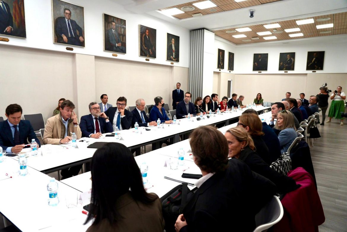 El ministro de Economía, Comercio y Empresa, Carlos Cuerpo, acompañado por la secretaria de Estado de Comercio, Amparo López, ha mantenido reuniones con representantes de las patronales empresariales, con los sectores afectados y con la Cámara de Comercio de Valencia para escuchar el estado de situación en el que se encuentra y explicar el detalle del primer Plan de respuesta a los afectados por la DANA.