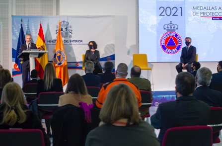 El ministro del Interior, Fernando Grande, ha presidido este jueves el acto de entrega de las Medallas al Mérito de la Protección Civil, que distinguen a personas u organizaciones que durante 2020 se destacaron por sus actuaciones excepcionales en la protección de personas y bienes afectados por situaciones de emergencia, en consonancia con los objetivos perseguidos por el Sistema Nacional de Protección Civil.