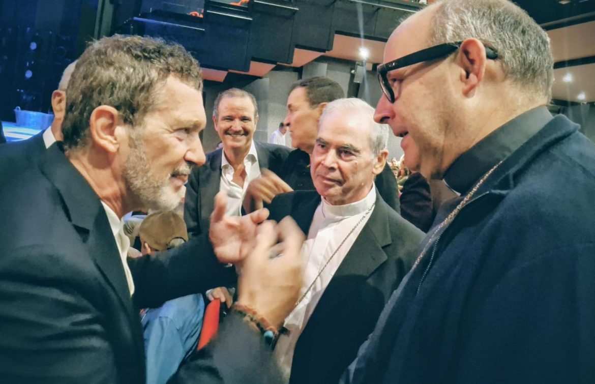 El Obispo de Málaga, D. José Antonio Satué, acudió el jueves 30 de octubre al estreno del musical Godspell en su nueva edición en Málaga, en compañía del obispo emérito, D. Jesús Catalá. Allí pudo disfrutar de una representación que vuelve a desplegar la alfombra roja en el Teatro del Soho bajo la dirección de Antonio Banderas, con quien Mons. Satué pudo compartir impresiones