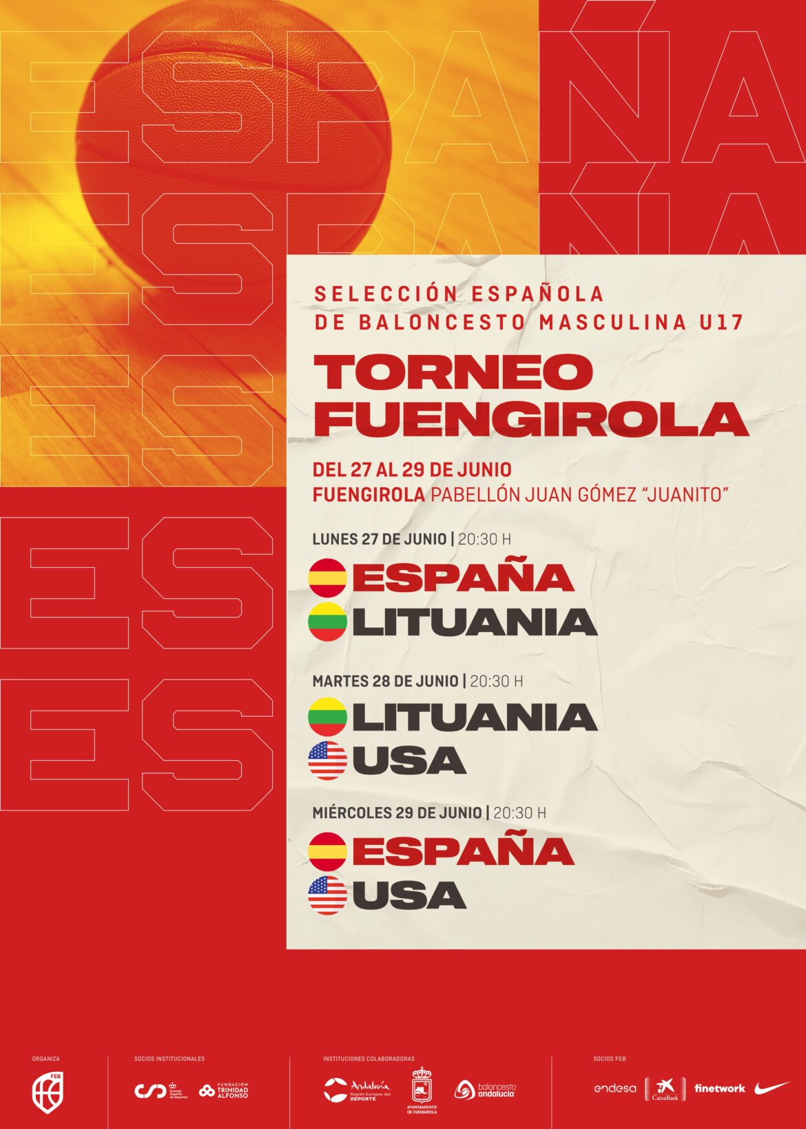 De esta forma, el próximo lunes 27 de junio, a las 20:30 horas, se disputará el primer encuentro, que enfrentará a los dos países europeos de la cita, España y Lituania. Al día siguiente, y a la misma hora, será el estreno de los estadounidenses que competirán contra los lituanos. El miércoles 29 de junio será el momento del España-EE.UU., también a partir de las 20:30 horas.