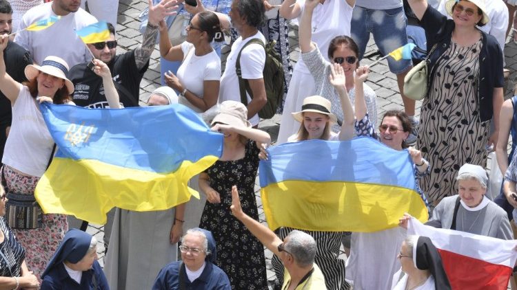 “Saludo a este grupo ucraniano con las banderas que están allí. Estamos cerca de ustedes. Este es un deseo de paz, por eso aliento todos los esfuerzos que se hagan para que la paz se pueda construir lo antes posible, con ayuda internacional”.