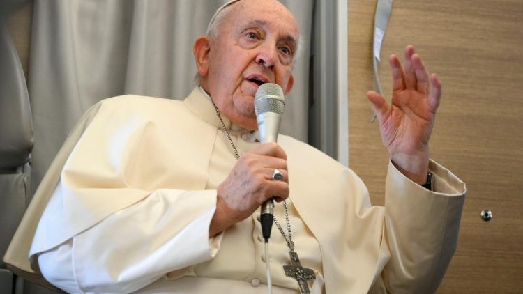 Papa Francisco: «Pongámosla en su sitio: un diálogo con los jóvenes rusos. Y al final del diálogo les di un mensaje, un mensaje que siempre repito: que se hagan cargo de su herencia. Primer punto: que se hagan cargo de su herencia. Lo mismo digo en todas partes. E incluso con esta visión trato de hacer el diálogo entre abuelos y nietos: que los nietos se hagan cargo de la herencia. Esto lo digo en todas partes y este ha sido el mensaje. Un segundo paso, hacer explícita la herencia: dije de hecho la idea de la gran Rusia, porque la herencia rusa es muy buena, es muy hermosa. Piensen en el campo de la literatura, en el campo de la música, hasta un Dostoevskij que hoy nos habla de humanismo maduro; ha asumido este humanismo, que se ha desarrollado, en el arte y en la literatura. Este sería un segundo plano, desde que hablé de la herencia, ¿no? El tercero, quizás no del todo correcto, pero hablando de la gran Rusia en el sentido quizás no tanto geográfico, sino cultural, me acordaba de lo que nos enseñaban en la escuela: Pedro I, Catalina II. Y llegó este tercer (elemento, ndr), que quizá no sea del todo correcto. No lo sé. Que nos lo digan los historiadores. Pero fue un añadido que se me ocurrió porque lo había estudiado en la escuela. Lo que les dije a los jóvenes rusos es que se hicieran cargo de su propia herencia, que tomaran su propia herencia, lo que significa no comprarla en otra parte. Tomen su propia herencia. Y qué legado ha dado la gran Rusia: la cultura rusa es de una belleza, de una profundidad muy grande; y no debería borrarse por problemas políticos. En Rusia ha habido años oscuros, pero la herencia siempre ha permanecido así, a la mano. Luego usted habla de imperialismo. Y yo no estaba pensando en imperialismo cuando dije eso, estaba hablando de cultura, y la transmisión de la cultura nunca es imperial, nunca; siempre es diálogo, y estaba hablando de eso. Es cierto que hay imperialismos que quieren imponer su ideología. Me detendré aquí: cuando la cultura se destila y se convierte en ideología, ése es el veneno. Se utiliza la cultura, pero destilada en ideología. Esto hay que distinguirlo, cuando es la cultura de un pueblo y cuando son las ideologías que luego surgen para algún filósofo, algún político de ese pueblo. Y esto lo digo para todos, incluso para la Iglesia. Muchas veces se ponen ideologías dentro de la Iglesia, que alejan a la Iglesia de la vida que viene de la raíz y va hacia arriba; alejan a la Iglesia de la influencia del Espíritu Santo. Una ideología es incapaz de encarnarse, es sólo una idea. Pero la ideología, al tomar fuerza y convertirse en política, suele convertirse en dictadura, ¿no?, se vuelve incapaz de dialogar, de avanzar con las culturas. Y los imperialismos hacen esto. El imperialismo siempre se consolida sobre la base de una ideología. También en la Iglesia hay que distinguir entre doctrina e ideología: la verdadera doctrina nunca es ideológica, nunca; está enraizada en el pueblo santo y fiel de Dios; en cambio la ideología está desvinculada de la realidad, desvinculada del pueblo… No sé si he respondido.