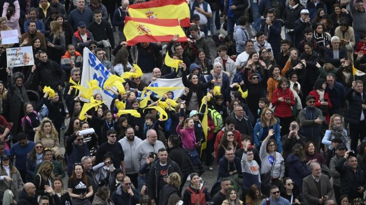Luego, el Papa Francisco dirigió su saludo a todos los fieles y peregrinos que llegaron de Italia y de otros países. Especialmente saludó a los peregrinos de Oviedo (España) y a los alumnos de Vila Pouca de Aguair en Portugal. También a los grupos de la Acción Católica de Rímini y de Saccolongo; a los fieles de Lentiai, Turín y Bolzano; a los confirmandos de Valvasone y Almenno San Salvatore; a los adolescentes y jóvenes de Tricesimo, Leno, Chiuppano y Fino Mornasco; a los monaguillos de Arcene y los alumnos del colegio Sant’Ambrogio de Milán.