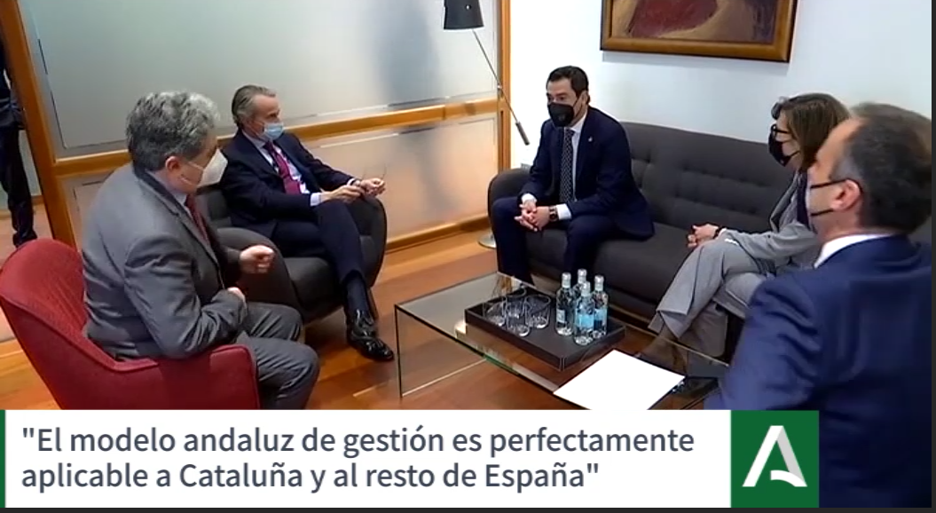 El presidente de la Junta de Andalucía, Juanma Moreno, participó el pasado viernes en el ‘Cercle d’Economia’ de Barcelona, donde reflexionó sobre el contexto político en España, particularmente en Cataluña, y el impacto de la pandemia. Aquí, ha puesto en valor el nuevo modelo andaluz de gestión que, en su opinión, es aplicable a otras comunidades autónomas, como la catalana, y puede inspirar un nuevo y mejor rumbo para España.