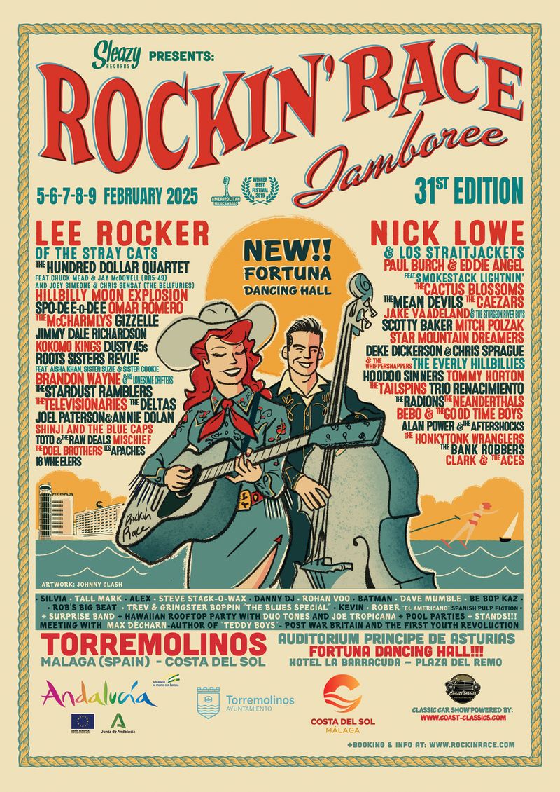 Torremolinos acoge del 5 al 9 de febrero la trigésimo primera edición del Rocki’n Race Jamboree, el mayor festival de España, único en Andalucía, y uno de los más importantes de Europa dedicado al Rock&Roll de los años 50 y 60. Contará con la actuación de 45 bandas, entre las que destacan Nick Lowe o Lee Rocker, y se prevé la asistencia de alrededor de 40.000 personas.