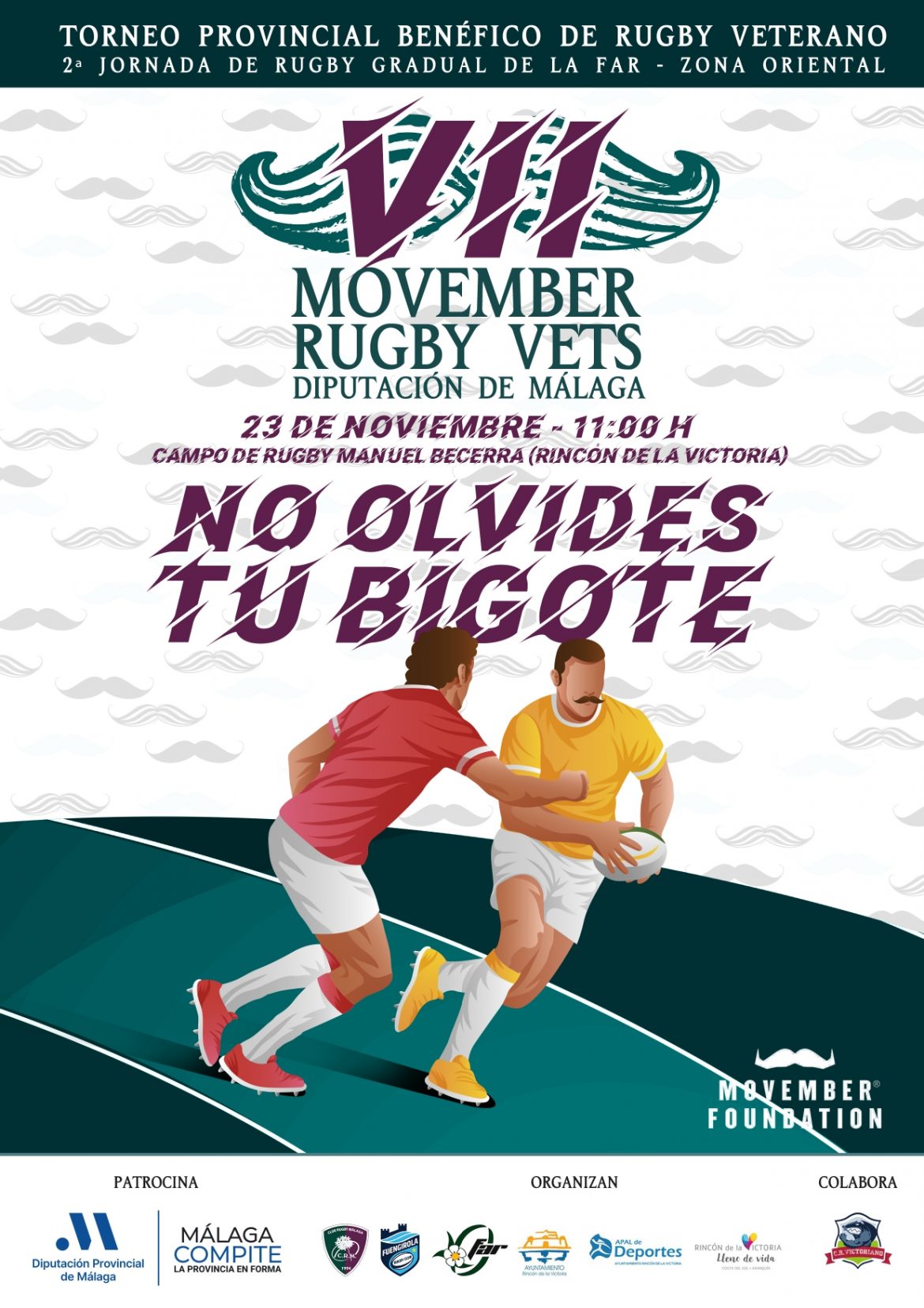 Rincón de la Victoria acogerá una nueva edición del Movember Rugby Vets que se celebrará el próximo 23 de noviembre en el Campo de Rugby Manuel Becerra organizado por el Club de Rugby Málaga, el Ayuntamiento de Rincón de la Victoria, a través de las Áreas de Deportes y Turismo, y en colaboración con el C.R. Victoriano.
