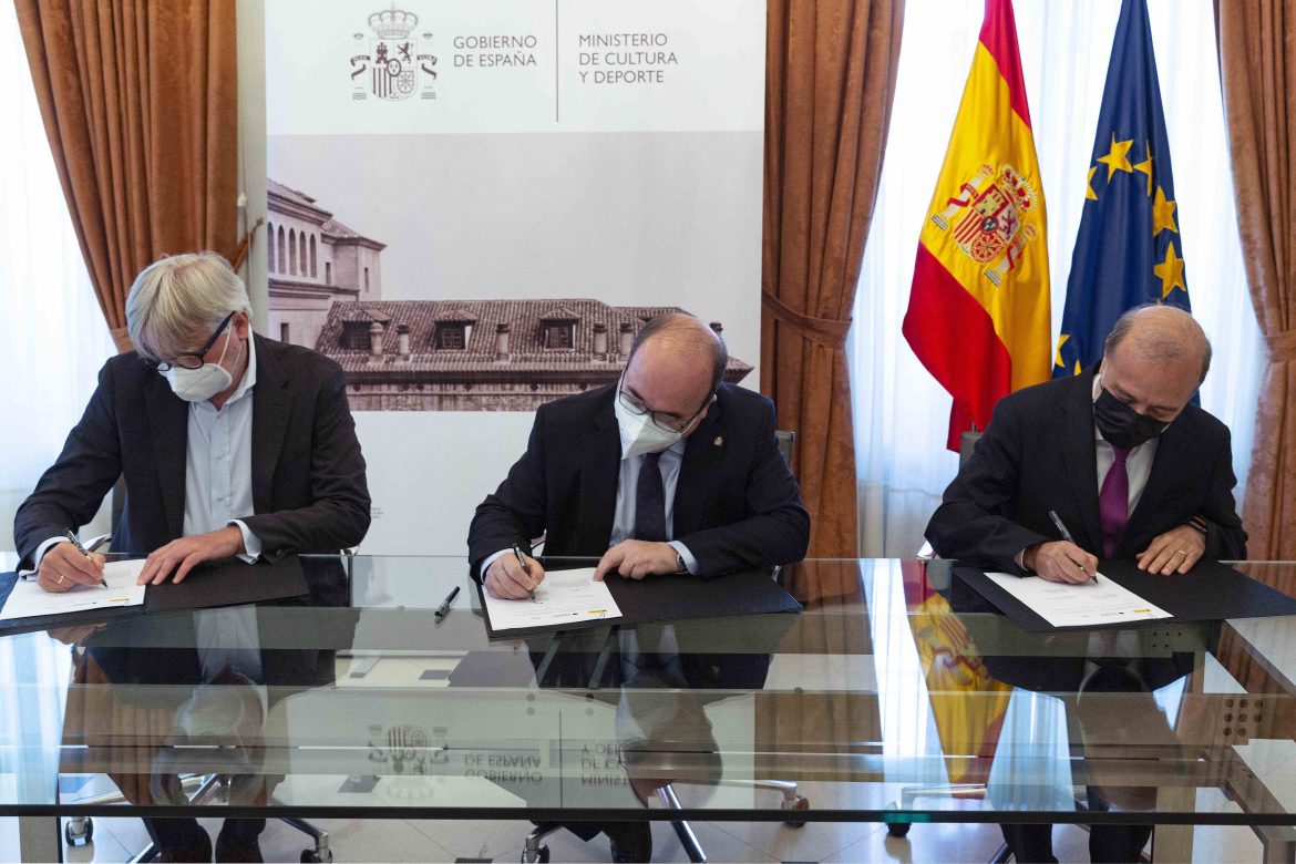Al final del encuentro, el ministro de Cultura y Deporte, Miquel Iceta, ha firmado la modificación al acuerdo de País Invitado de Honor con el presidente de la Feria del Libro de Frankfurt y con el presidente de Acción Cultural Española, con lo que queda formalmente modificada la fecha de participación de España del año 2021 al 2022, debido a la pandemia.