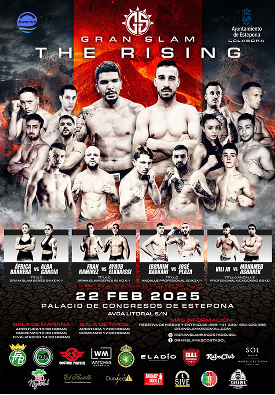 Como novedad, en esta edición habrá dos galas diferenciadas, una de mañana, desde las 10:30 horas, con combates amateur de Muay Thai, K-1 y Kick Boxing, y otra gala profesional en horario de tarde, a partir de las 17:30 horas, con combates de K-1 y Boxeo, donde se pondrán en juego 4 títulos profesionales World Slam Series de K-1 y 2 títulos profesionales de Andalucía, que disputarán el esteponero José Plaza en 80 kg, y el marbellí Vili Jr. en 85 kg.