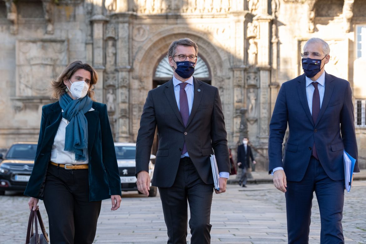 El presidente del Gobierno gallego, Alberto Núñez Feijóo, trasladó hoy a la vicepresidenta tercera y ministra para la Transición Ecológica y el Reto Demográfico, Teresa Ribera, la oportunidad que la fábrica de fibras textiles y el centro de economía circular, que optan a los fondos europeos Next Generation, suponen para afrontar la transición energética en España.