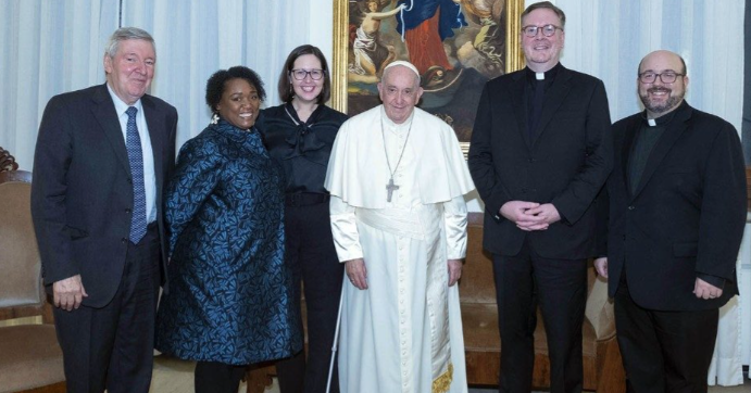 El 22 de noviembre, cinco miembros de America Magazine, la revista fundada por los jesuitas de Estados Unidos en 1909, entrevistaron al Papa Francisco en su residencia de Santa Marta en el Vaticano. Se trata del padre Matt Malone, director saliente; el padre Sam Sawyer, editor entrante; Kerry Weber, director ejecutivo; Gerard O’Connell, corresponsal; y Gloria Purvis, conductora del «Podcast Gloria Purvis». Con el Papa discutieron sobre una amplia gama de temas, incluyendo la polarización en la Iglesia estadounidense, el racismo, la guerra en Ucrania, las relaciones del Vaticano con China y el papel de las mujeres en la Iglesia. El Papa habló en español con la ayuda de Elisabetta Piqué para la traducción.