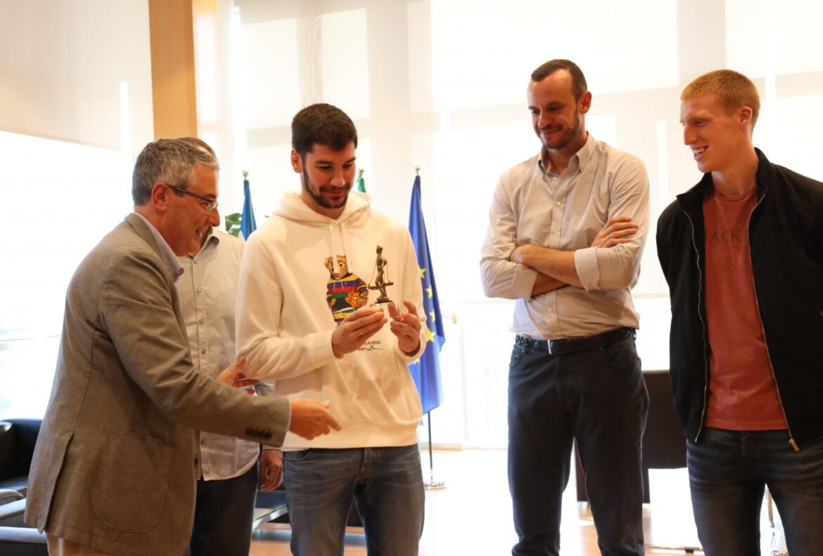 Francisco Salado recibe a la representación malagueña de la Selección Española de Baloncesto tras su victoria en el Eurobasket
