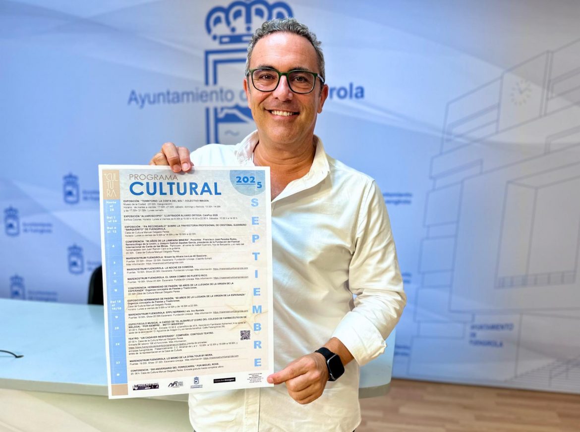 El concejal de Cultura del Ayuntamiento de Fuengirola, Rodrigo Romero, ha dado a conocer la programación cultural diseñada para el mes de septiembre, donde conciertos, conferencias y exposiciones serán los principales protagonistas. La primera de las citas culturales llegará el día 1 con la inauguración de la muestra ‘Alvaroscopio’, vinculada al festival Cala Pop y que estará abierta al público hasta el 20 de septiembre en el edificio Colores.