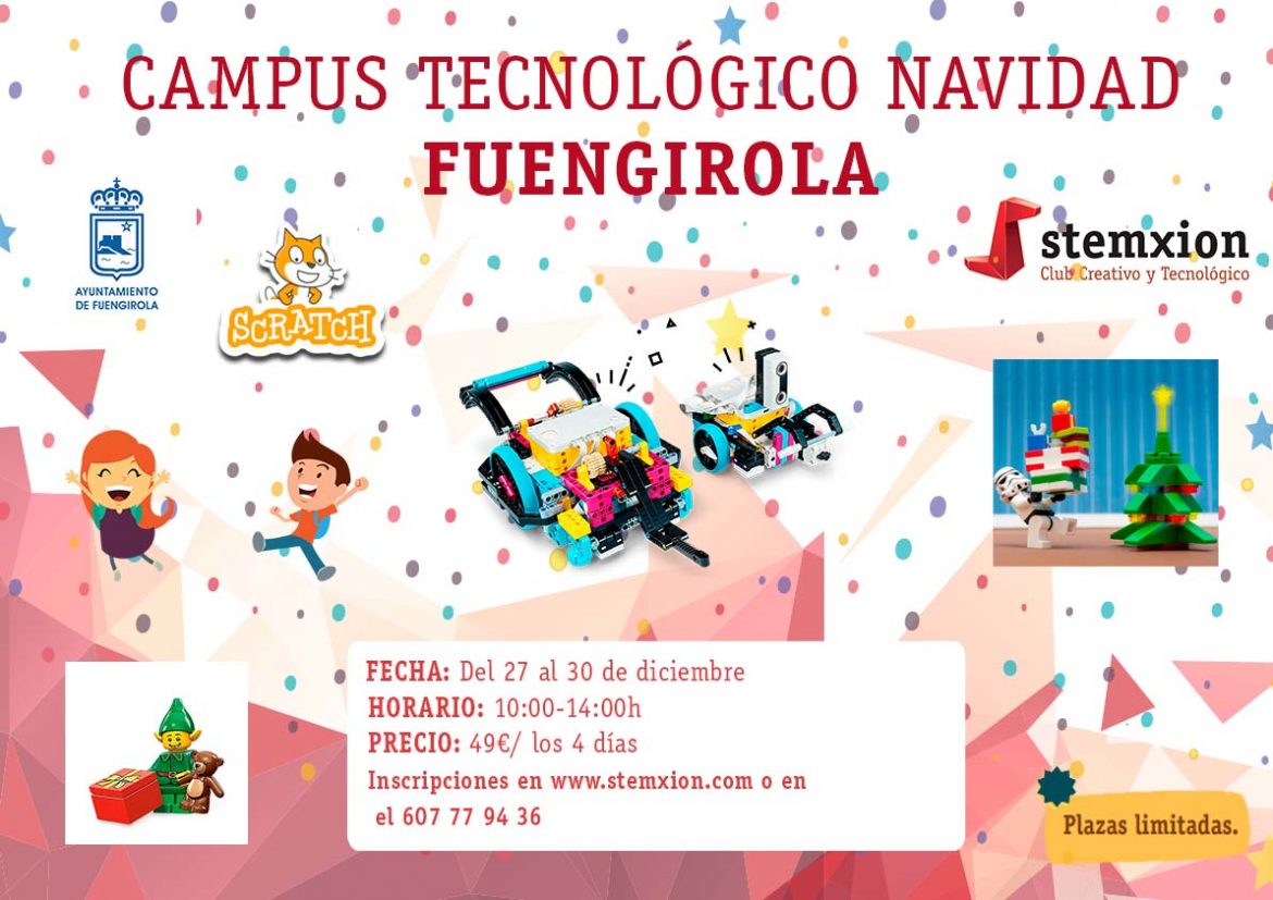 El Área de Juventud del Ayuntamiento de Fuengirola ha impulsado estas navidades un Campus Tecnológico que se desarrollará del 27 al 30 de diciembre. El concejal de Juventud, José Manuel Martín, ha informado esta mañana de esta iniciativa, dirigida a niños con edades comprendidas entre los 6 y los 12 años y cuyas inscripciones se pueden realizar, bien en la página web www.stemxion.com o bien llamando por teléfono al 607 77 94 36.