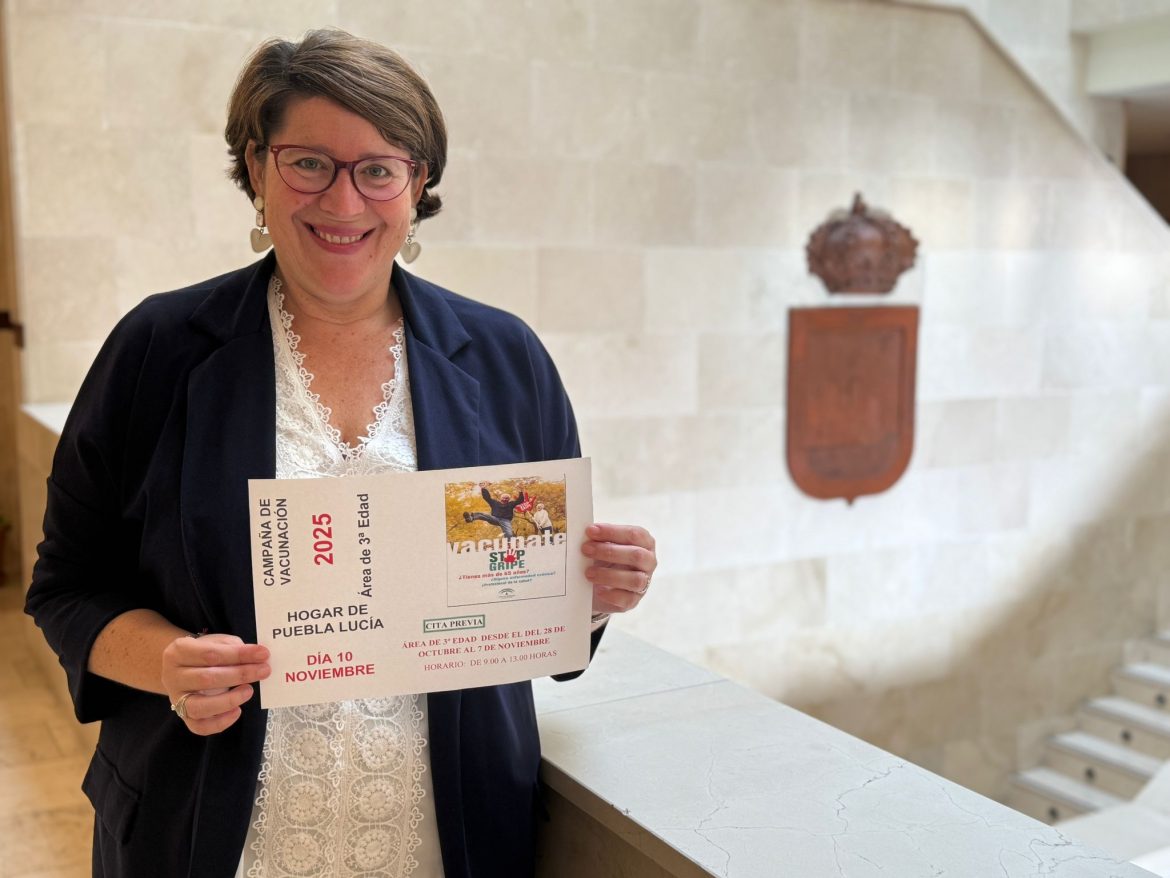 La campaña de vacunación contra la gripe estacional se llevará a cabo el próximo día 10 de noviembre, en el Hogar Social de Puebla Lucía de calle Blanca Paloma. Las personas mayores de 65 años que deseen vacunarse deben inscribirse previamente en las citadas instalaciones municipales, en horario de 9:00 a 13:00 horas, con fecha límite el próximo viernes 7. Este año, se podrá administrar además a las personas que lo deseen la dosis de recuerdo de la COVID 19.