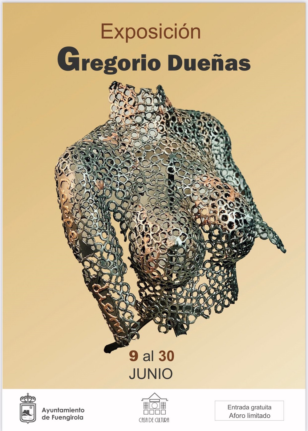 La exposición de escultura de Gregorio Dueñas será inaugurada este miércoles 9 de junio, a las 19:00 horas, en la Casa de la Cultura y se podrá visitar hasta el día 30, con entrada gratuita.