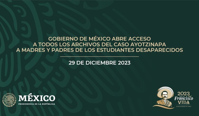 Comprometido con los principios de verdad, memoria y justicia, del 4 de enero al 4 de marzo de 2024 el Gobierno de México abrirá el acceso a todos los archivos del caso Ayotzinapa en posesión del Estado mexicano, a las madres y los padres de los 43 jóvenes normalistas desaparecidos.