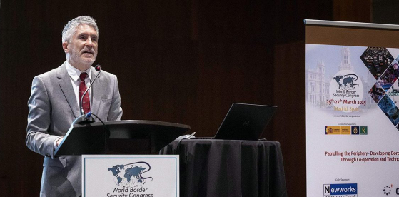 Grande-Marlaska ha inaugurado en Madrid el Congreso Mundial de Seguridad Fronteriza 2025, que hasta el próximo jueves reúne en la capital a numerosos representantes de agencias internacionales, Policía Nacional y Guardia Civil para debatir las políticas actuales y futuras, así como las tecnologías nuevas y en desarrollo aplicables en materia de control y seguridad de las fronteras.