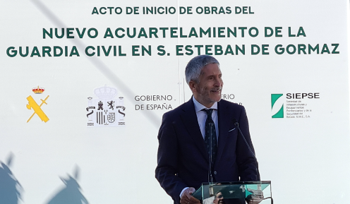 El ministro del Interior, Fernando Grande-Marlaska, ha destacado durante la visita a las obras del futuro cuartel de la Guardia Civil en San Esteban de Gormaz (Soria), la importancia de la implantación territorial de la Guardia Civil para fijar población en la España rural y contribuir a su desarrollo económico.