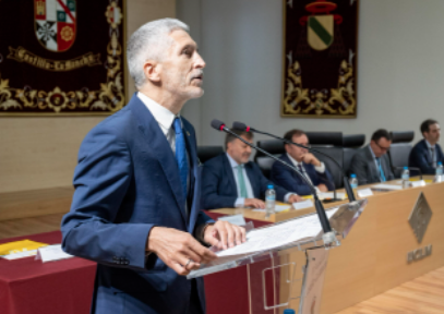 Grande-Marlaska ha presidido el acto de entrega de diplomas a los miembros de la XLVIII promoción del Cuerpo de Ayudantes de Instituciones Penitenciarias, celebrado en el Paraninfo de la Universidad de Castilla-La Mancha en la capital conquense y al que han asistido, entre otras autoridades, el secretario general de Instituciones Penitenciarias, Ángel Luis Ortiz, y el alcalde de la ciudad, Darío Dolz.