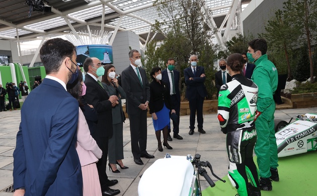 Más tarde, Don Felipe y Doña Letizia iniciaron un recorrido por el Campus visitando la “Plaza Iberdrola” donde se encuentra “Iberdrola con la biodiversidad”, un bosque urbano con muestras de las acciones de Iberdrola y su contribución a la biodiversidad; “Pantalla 360º”; “Módulos experienciales”, donde a través de efectos sonoros y visuales se generarán experiencias sensoriales (Hidrógeno verde, Eólica marina y Redes inteligentes), e “Iberdrola U” (Programa Universidades de Iberdrola) donde estaba expuesto el coche eléctrico de la escudería ICAI Speed Club Electric.