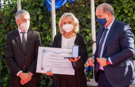 El ministro del Interior, Fernando Grande-Marlaska, ha entregado este lunes a Pilar Goya, viuda de Alfredo Pérez Rubalcaba, las máximas condecoraciones de Policía Nacional y Guardia Civil, concedidas por ambos cuerpos a título póstumo a quien fue titular de la cartera entre abril de 2006 y julio de 2011 y que fueron aprobadas por el Consejo de Ministros el pasado 3 de noviembre de 2020.