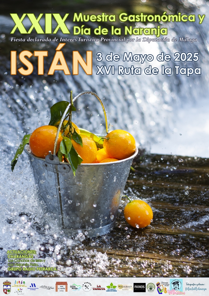 El municipio de Istán celebra, un año más, su Muestra Gastronómica y Día de la Naranja con el apoyo de la Diputación de Málaga. Este año se festeja la XXIX edición de esta fiesta declarada de Singularidad Turística Provincial y que se realiza junto a la XVI Ruta de la Tapa el próximo sábado 3 de mayo.