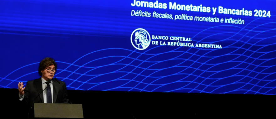 El Presidente Milei disertó en el cierre de las Jornadas Monetarias y Cambiarias 2024 Déficits fiscales, Política Monetaria e Inflación, que se realizaron en el Palacio Libertad, organizadas por el Banco Central.