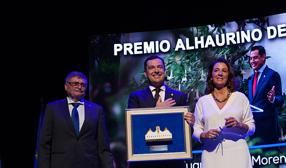 El presidente de la Junta de Andalucía, Juanma Moreno, ha recibido en el municipio malagueño de Alhaurín el Grande el título de Alhaurino del Año. Un galardón, que otorga cada año la Asociación Cultural Alifara.