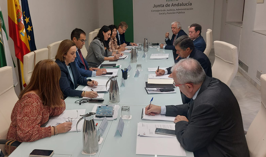 El consejero de Justicia, Administración Local y Función Pública, José Antonio Nieto, y el presidente del Tribunal Superior de Justicia de Andalucía (TSJA), Lorenzo del Río, han instado al Gobierno central a aclarar lo antes posible los nuevos juzgados que tiene previsto crear en la comunidad autónoma el próximo año.