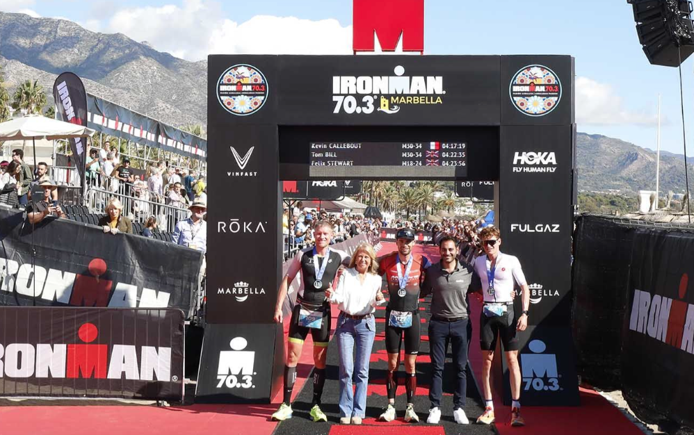 Kevin Callebout y Eva Marsac han sido los ganadores en las categorías masculina y femenina, respectivamente, del Ironman 70.3, un evento que ha reunido hoy en Marbella a más de 2.000 triatletas internacionales. La alcaldesa, Ángeles Muñoz, ha hecho entrega de los premios de un podio que han completado Tom Bill y Felix Stewart, segundo y tercer clasificado, y Deirdre Casey y Marie Luyckk, segunda y tercera clasificadas. La regidora ha subrayado “el éxito de participación y el impacto promocional” de una cita deportiva que, como ha señalado,  “ha permitido que los hoteles registren una ocupación total desde hace días y que supondrá un retorno económico de 10 millones de euros para la ciudad”.
