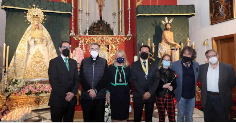 La alcaldesa, Ángeles Muñoz, acompañó anoche a la cofradía del Santo Cristo de la Vera Cruz, Santo Cristo Atado a la Columna y María Santísima Virgen Blanca en la misa y ofrenda floral a sus Sagrados Titulares, que tuvo lugar en la capilla del Santo Cristo. “Es una día muy significativo para los vecinos del Barrio Alto y queremos compartirlo con ellos”, aseguró la regidora, que quiso reconocer “el esfuerzo y el compromiso que está demostrando su hermano mayor, Alberto Mendoza, y el resto de hermanos en una Semana Santa diferente y marcada por la situación de pandemia”.